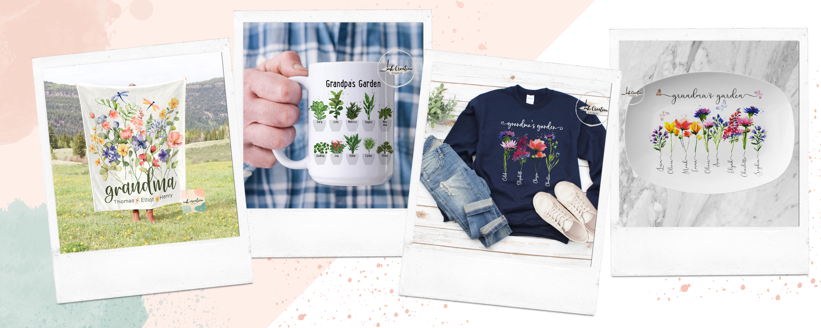 Grandma’s Garden Platter – Personalized Birth Flowers with Grandkids’ Names | Custom Gift for Grandma