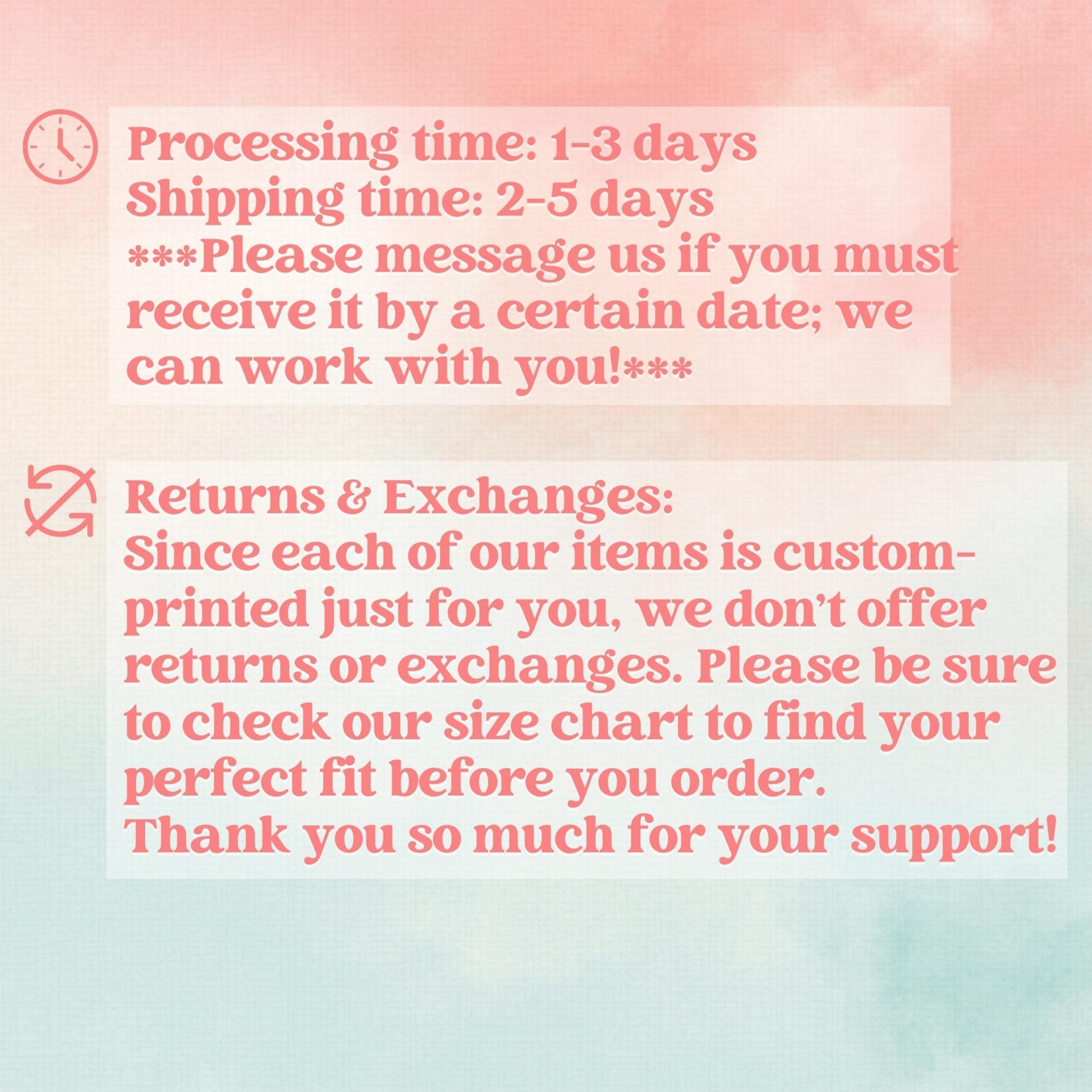 Because each sweatshirt is custom printed, we cannot accept returns or exchanges based on size. However, if there are any issues with your order, please contact us, and we'll quickly resolve them for you.
