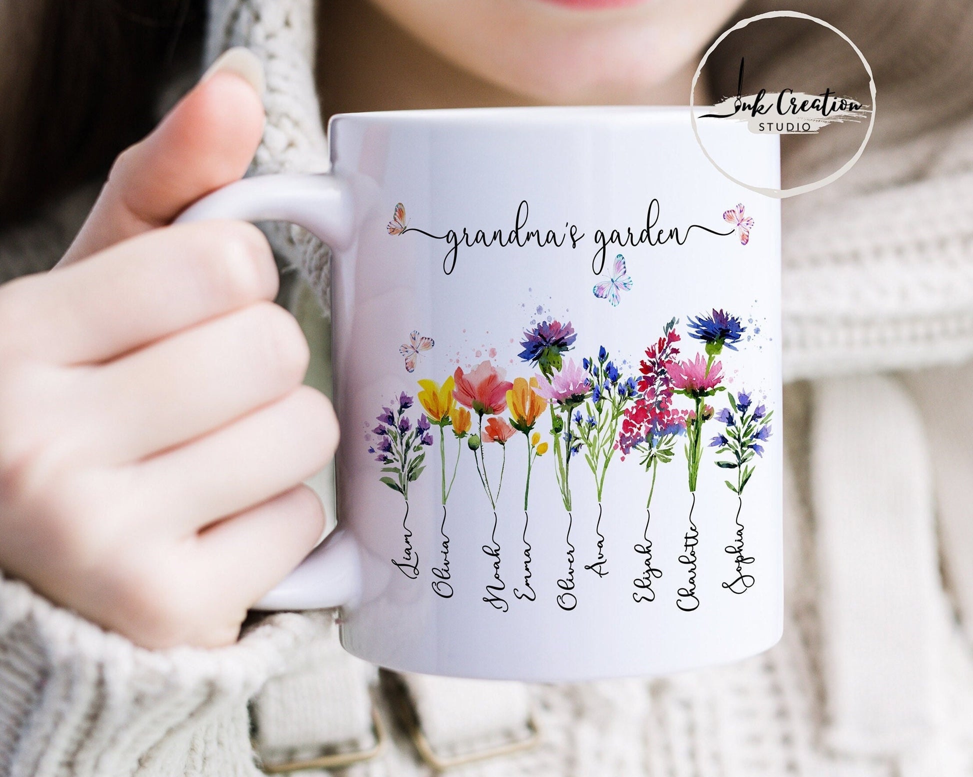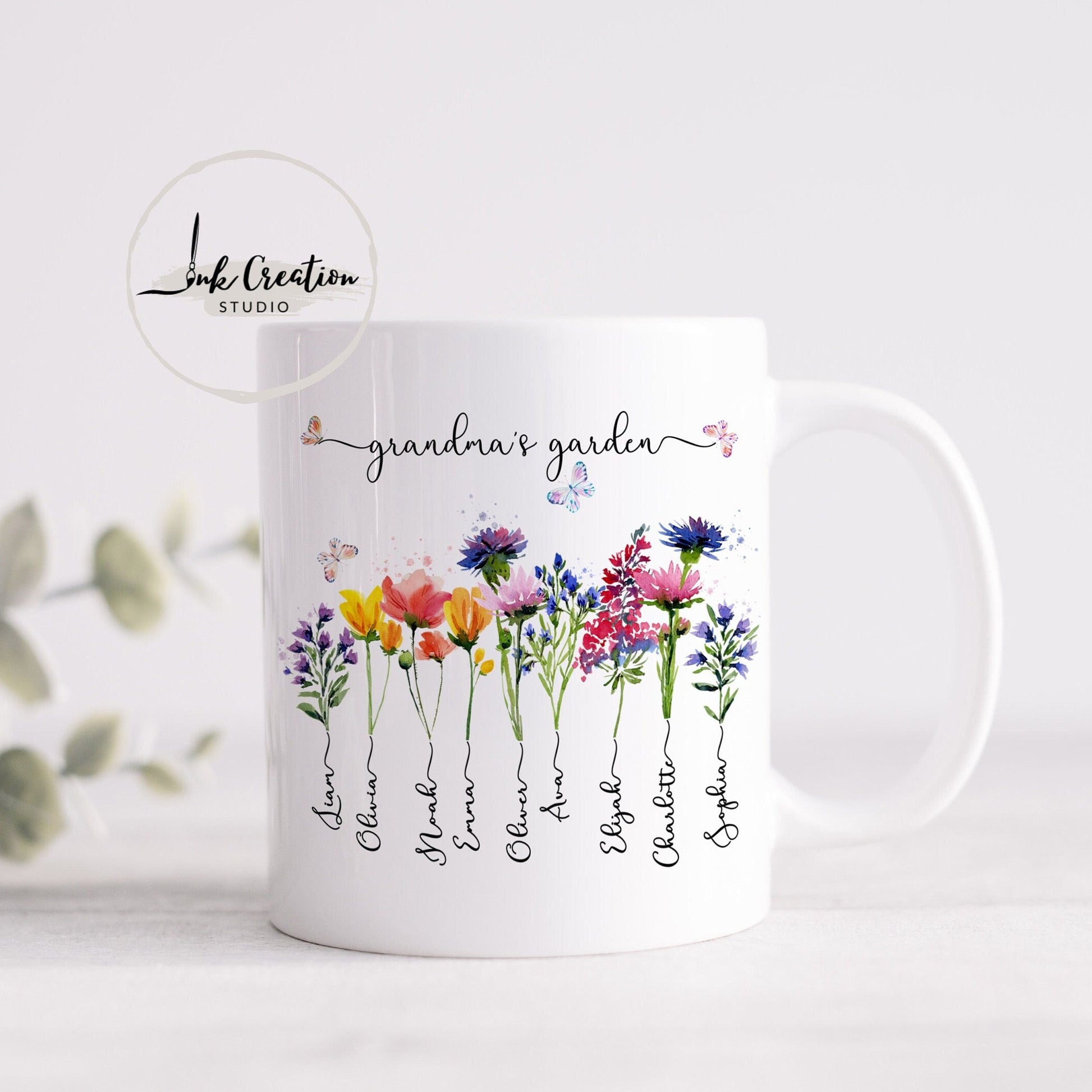 Grandma’s Garden Mug – Personalized Birth Flowers with Grandkids’ Names | Custom Gift for Grandma