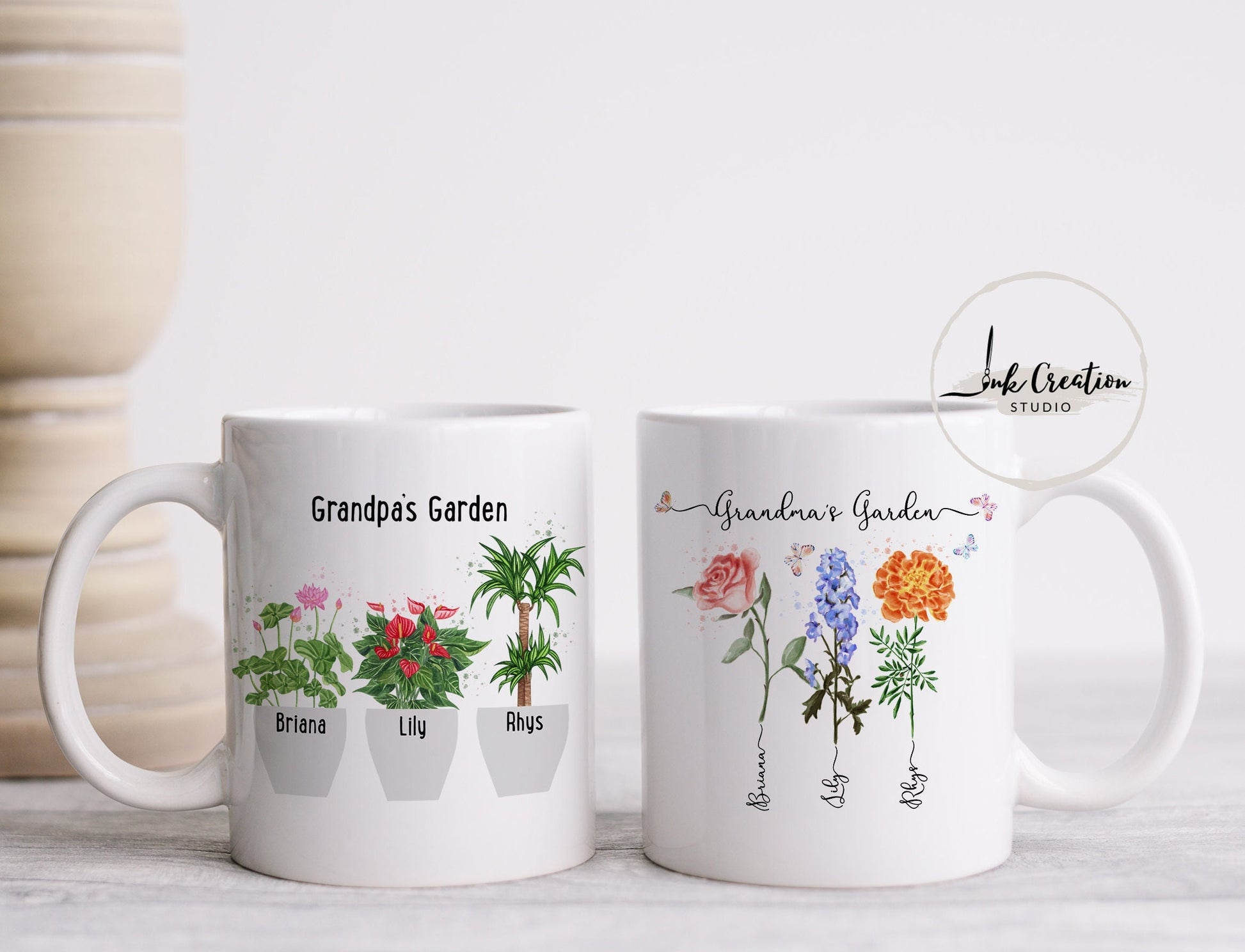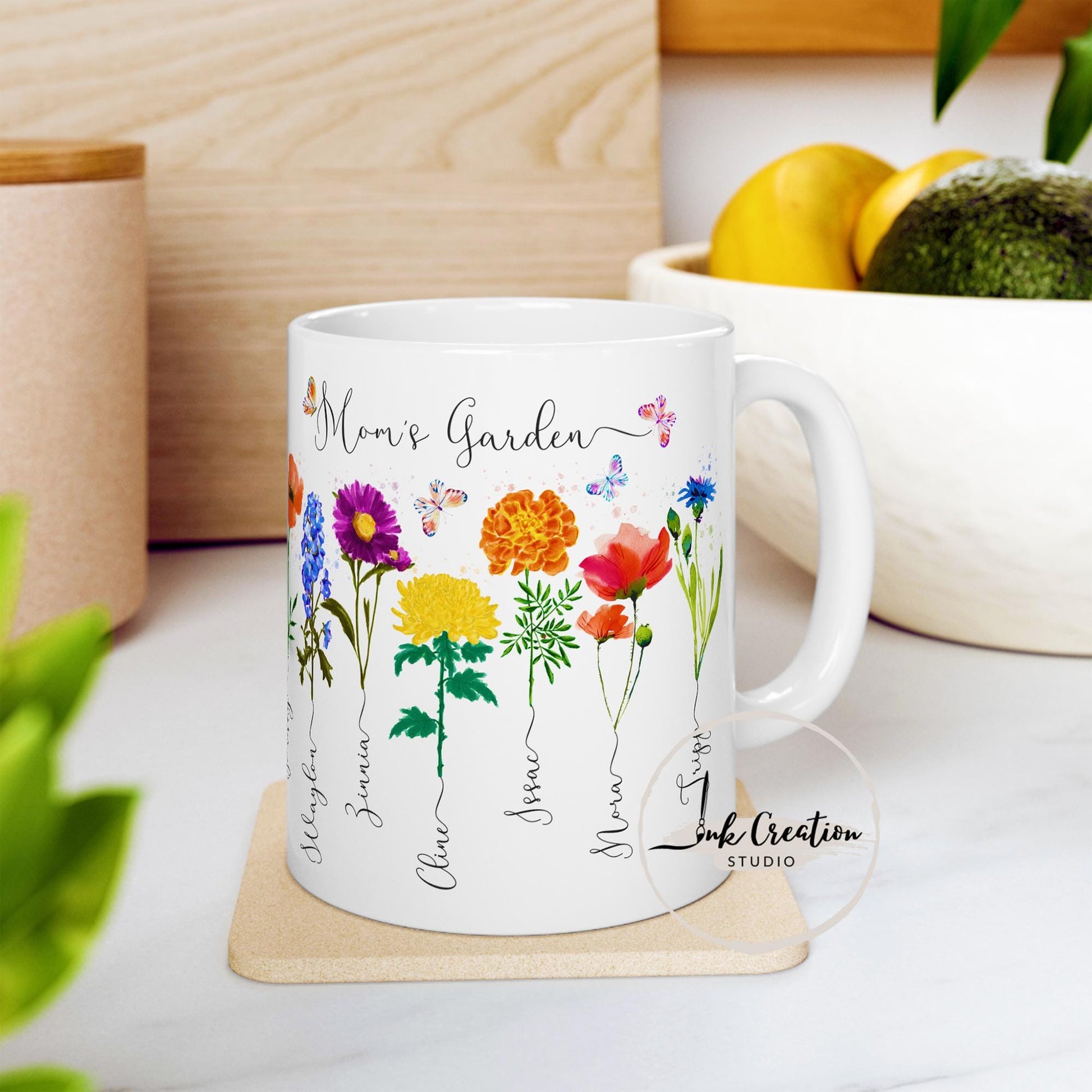 If you have more than 10 kids' names and flowers, we will make 2 separate designs: one for the front side and the other for the back side of any sized mug. The maximum is 20 names/flowers.