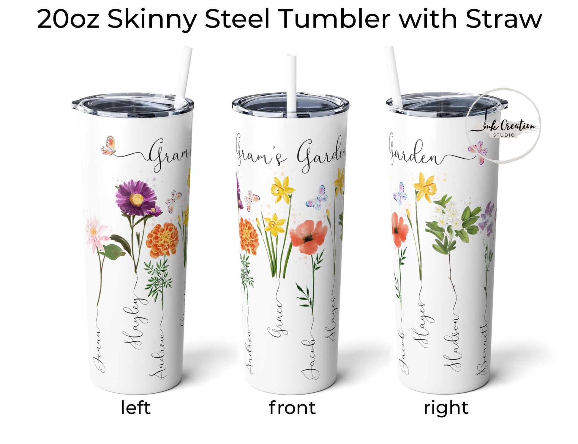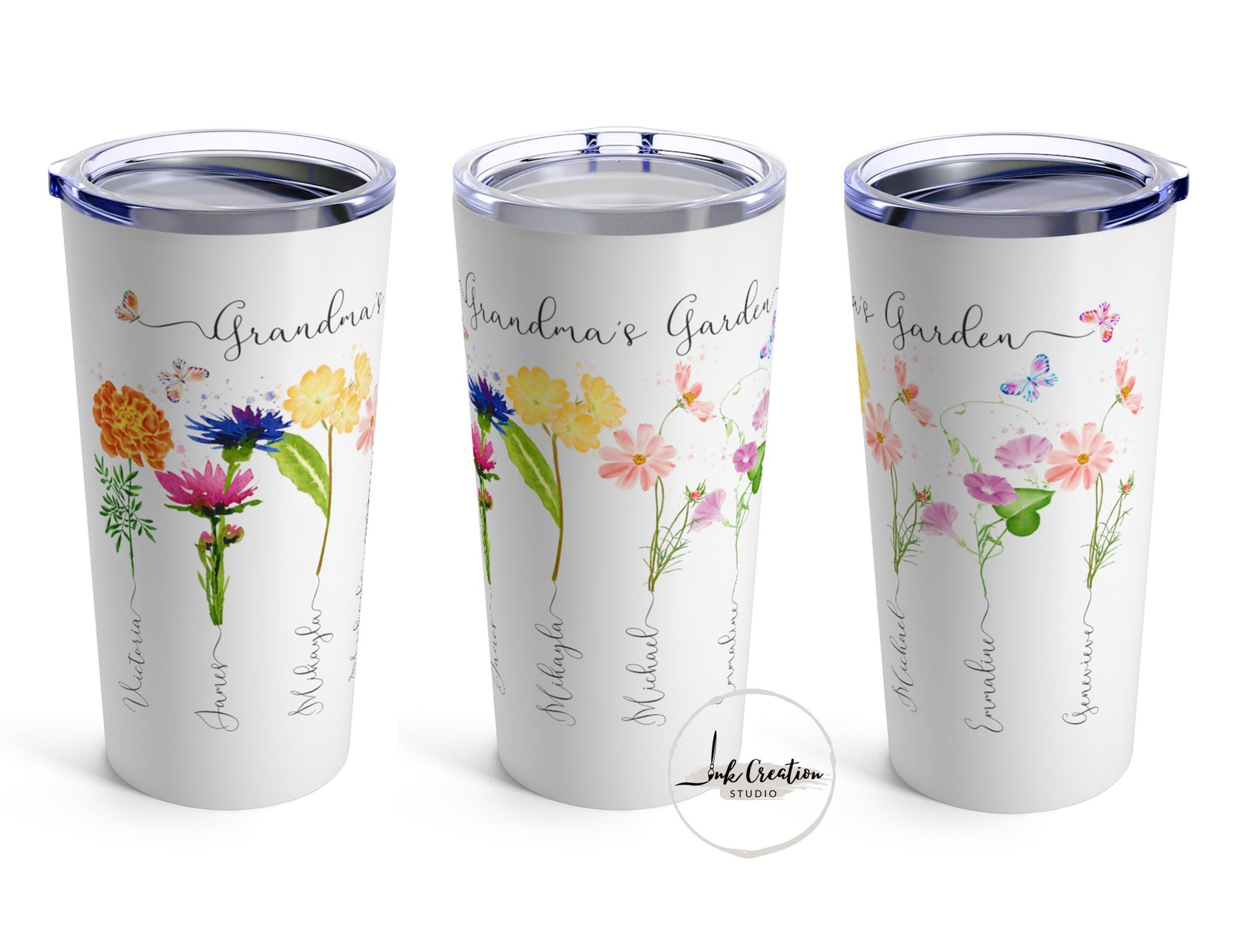 Grandma’s Garden Tumbler – Personalized Birth Flowers with Grandkids’ Names | Custom Gift for Grandma